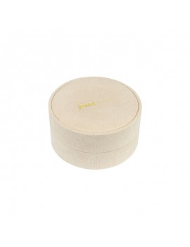 Dale a tus joyas el envoltorio perfecto con esta elegante caja redonda de la colección MOON. Su acabado en suave suede y tamaño compacto la convierten en el packaging ideal para piezas delicadas como anillos, pendientes o colgantes.